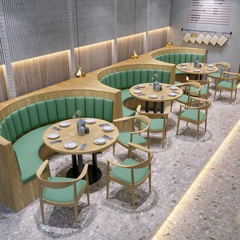 Customized Modern Restaurant Sofa Wooden Coffee Shop Table and Chair Half Circle Restaurant Booth Seating